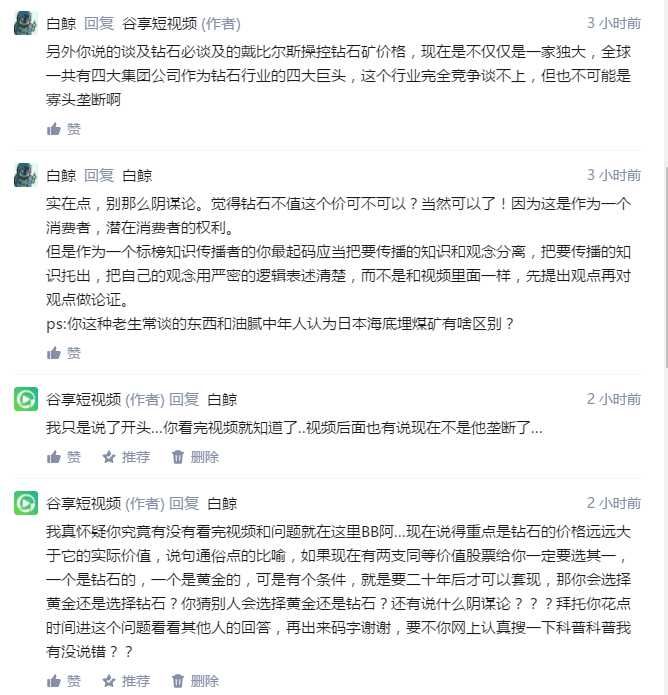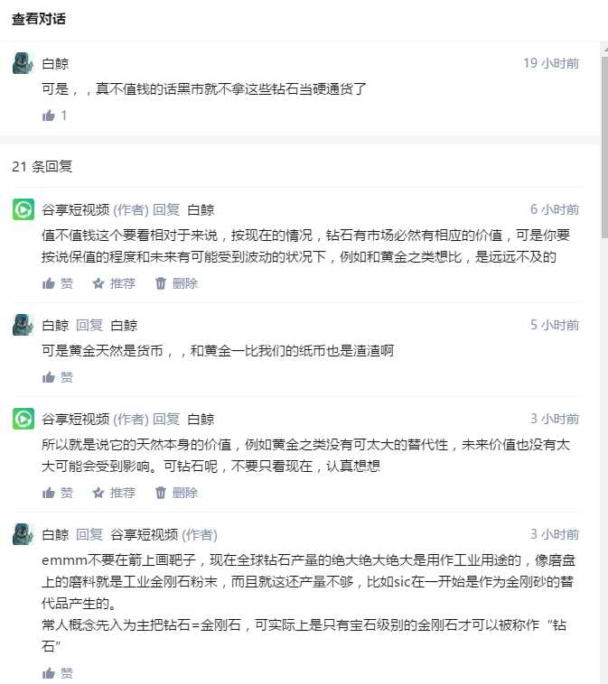 所以在商品经济社会里,单纯的从元素领域去探讨商品的价值,说白了有点抬杠的意思。更何况钻石这种商品还是天然合成,很少可再生的资源。