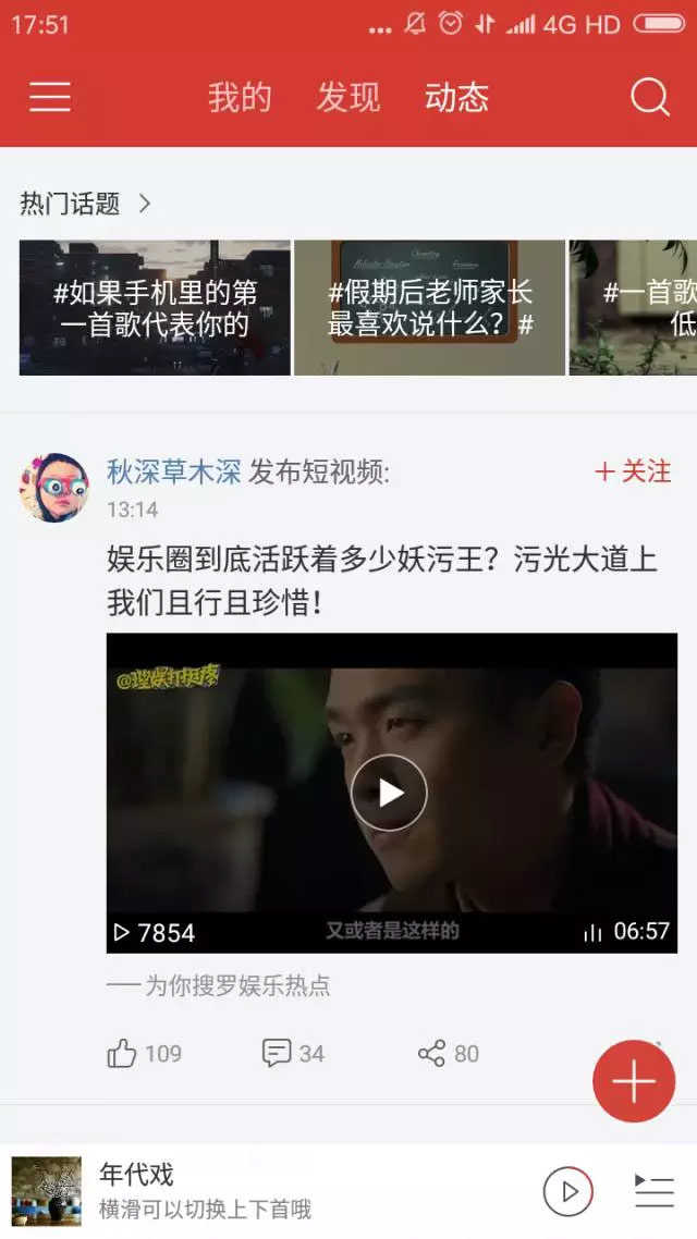 动态:就像微信发朋友圈一样,用户登录后可以在站内发布动态,分享自己喜欢的音乐的同时,可以添加图片(包括gif最多四张)添加文字,还可以@某人,再次营造“分享与发现好音乐”的氛围。