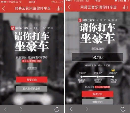 联合当时刚刚兴起的Uber进行跨界营销,凡在网易云音乐听歌均可以赠送Uber打车券,效果非常好,吸引了数万的新用户。