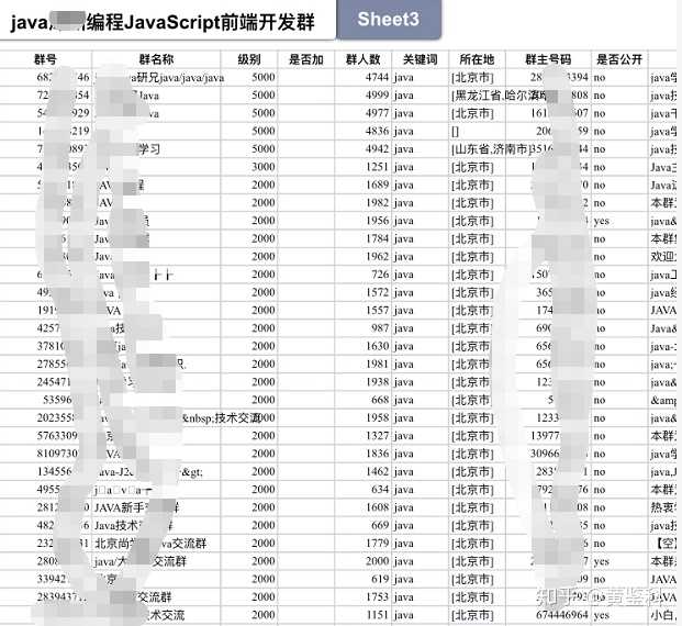 以Java培训为例:是我提取出来优质的Java相关的群,发给销售一个个用小号添加的表