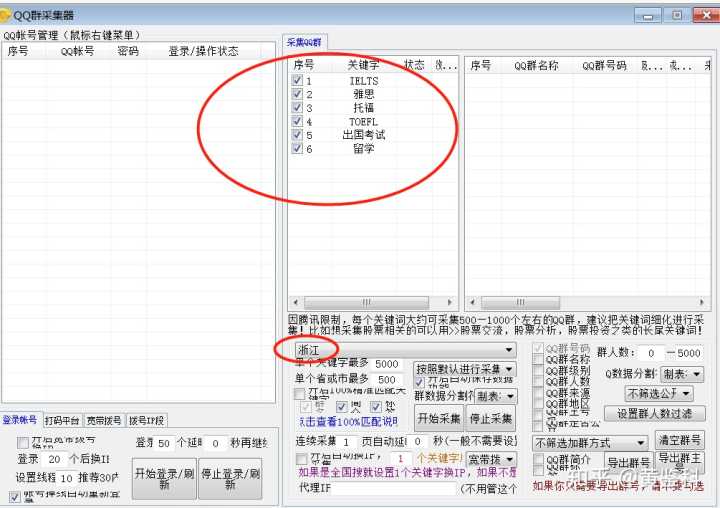 需要用小号不停采集,一个地区,雅思这类大的关键词,一个关键词采集5000个群,是一点问题都没有的。一个关键词,至少能采集5000个相关的群,想要更多的群数据,只需要头脑风暴更多的qq群关键词,类似于大搜的关键词优化。