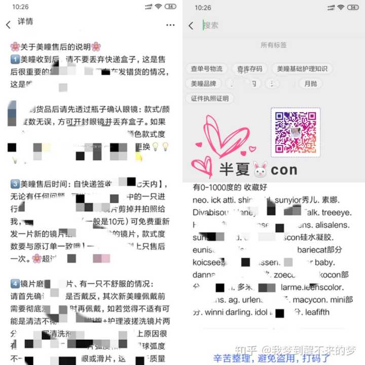 我的微信收藏都是美瞳相关图片和笔记,培训完直接转发给代理,存在自己微信里。不用像别的直播课,要拿纸笔做笔记再整理到便签。东西太多,手机都要满了⊙∀⊙
