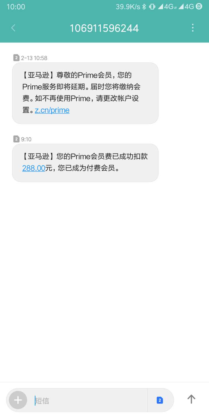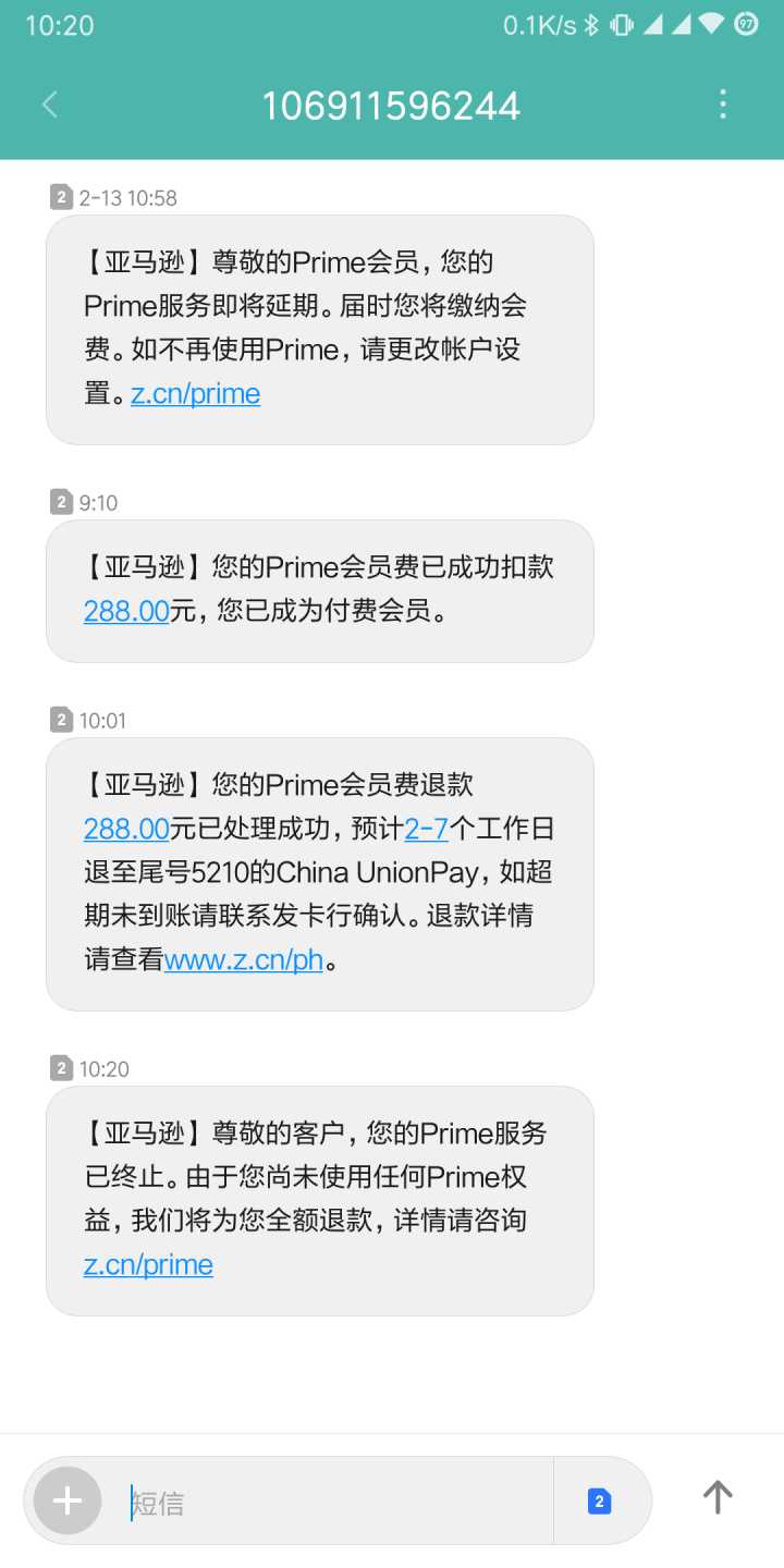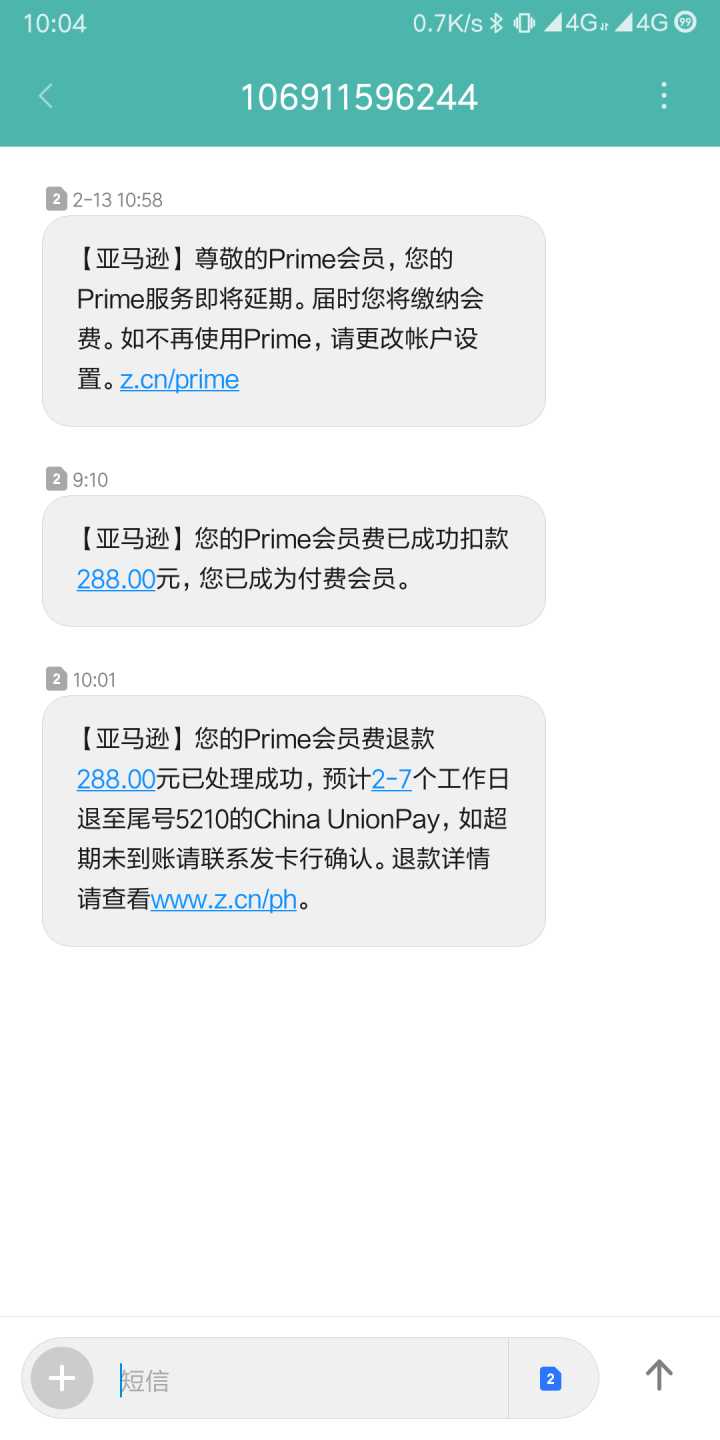 还有半年前,我买书它送了我体验Prime会员,我当时也没在意,反正也不会用,之后某一天,大半夜的银行卡上突然显示消费268元,当时我就莫名其妙,打电话查了一下说是在亚马逊上消费的,我查了好久才查到那个会员,是自动续费的,而且一续就是一年。我当时就觉得这是流氓作风。平时发一大堆没用的推荐邮件,让我看到亚马逊的邮件就直接标记为已读,懒得去看。好吧也是我的锅。