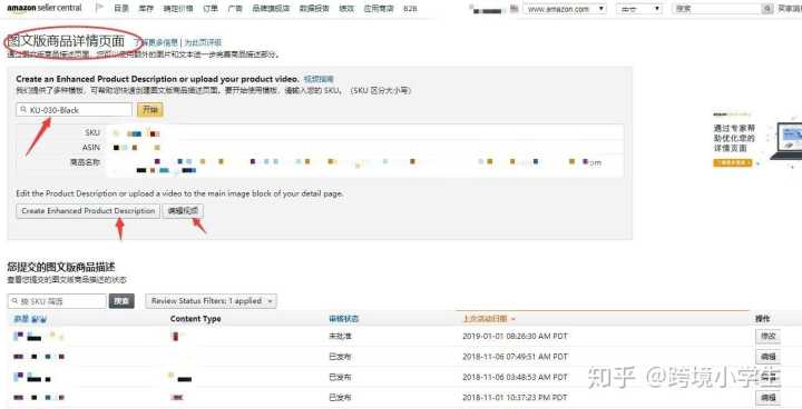 (9) 管理图文版商品描述:A+管理页面的入口