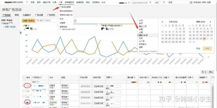 (3)业务报告:最常用来分析的部分,以一个asin为单位,可以看到成交,流量,转化率,浏览量,销售额等数据,可选时间段,之后的章节,会详细讲解