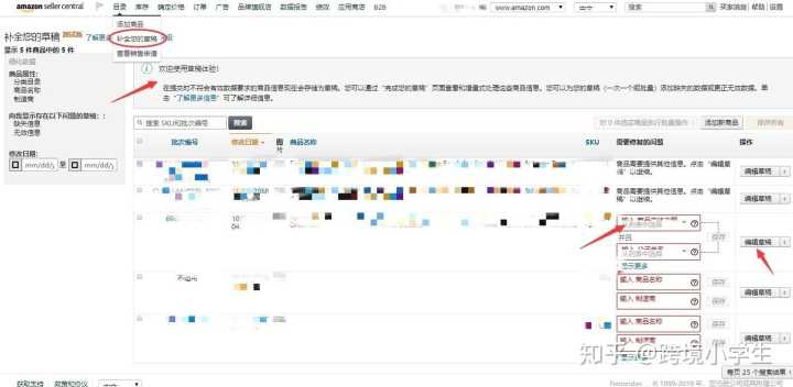 ①目录模块,目的下拉框只有两个选项,添加商品和补齐草稿,补齐草稿可以完成上次未编辑的listing