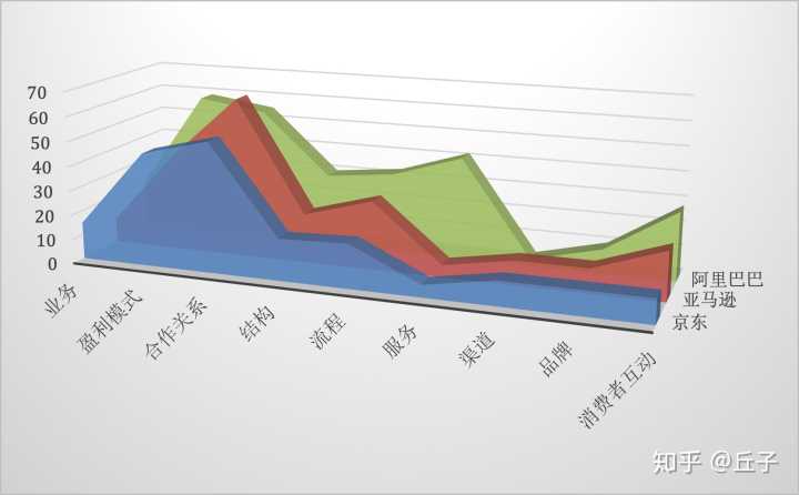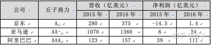 阿里巴巴丘子商力最强,因此盈利能力最强,亚马逊次之,京东第三。