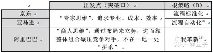 京东、亚马逊、阿里巴巴针对这些痛点运用的商业模式创新策略对比如下: