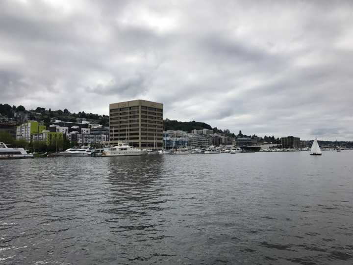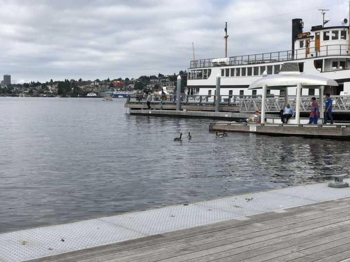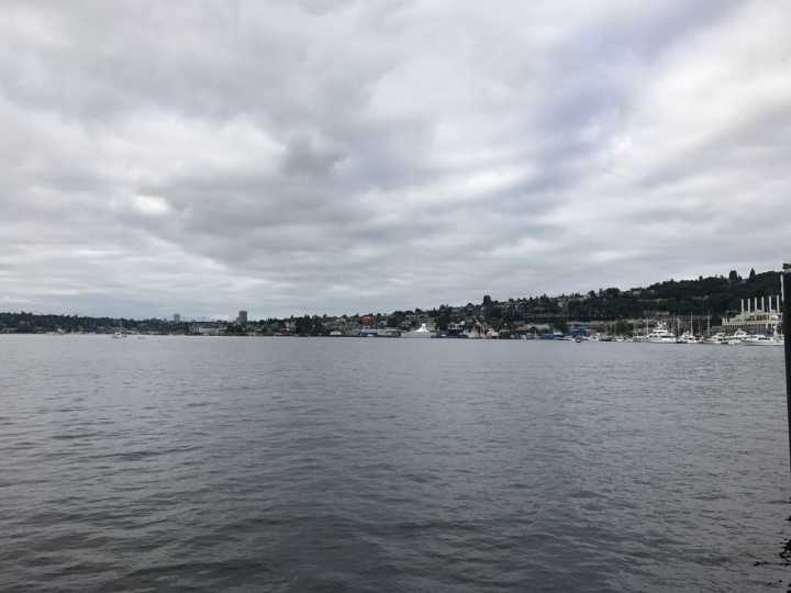 叫Lake Union,挺宽的,上面好多船呢,还有鸭子鹅啥的,岸上全是屎