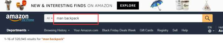 在亚马逊搜索框中,输入与你产品相关的搜索关键字