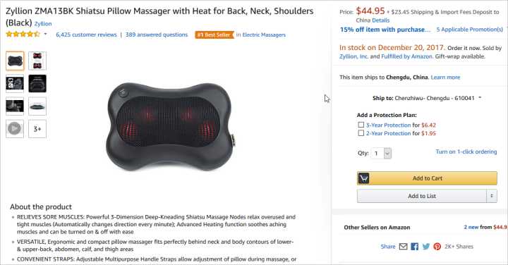 我测试的是一款电动按摩枕(按摩颈部、肩部、背部),该产品是该类目的Best Seller。