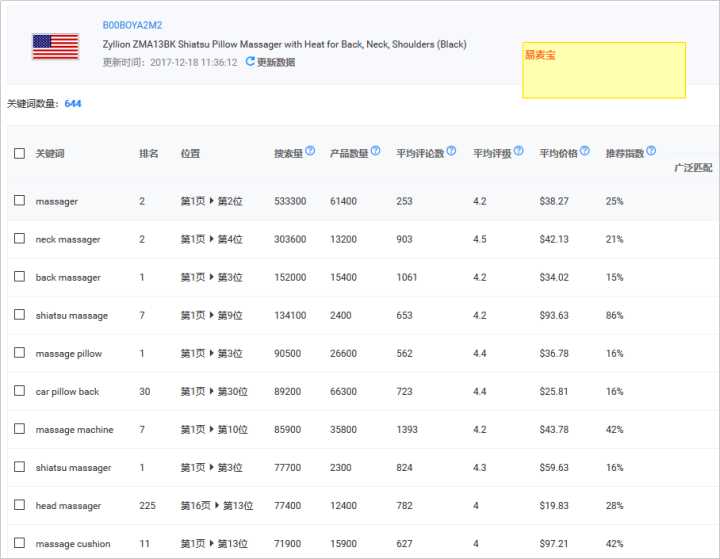 4 使用关键词软件(如 易麦宝),反查该ASIN的关键词
