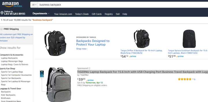 2 在亚马逊上用以上关键词找到一款畅销的男士商务双肩包