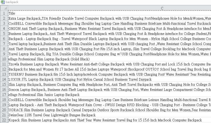 2. 摘录“同行listing中的关键词 在参考同行listing中的关键词时,我一般会取8至10个左右的排名较好并且产品review数量大概在几十个左右的listing作为参考,自己加以研究及比对每条listing中出现频率次数最高的关键词,然后摘录下来。