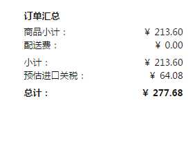 比如我最近买了海外购的一双鞋,我是会员,免国际运费,鞋子到手280多,税30多。