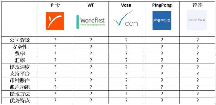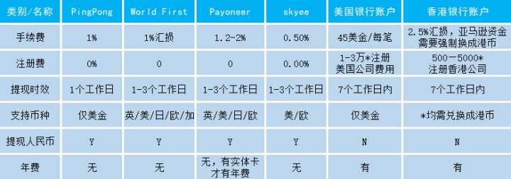美国银行账户、香港银行账户、World First、Payoneer(这货就是所谓的P卡)和PingPong卡,就世成个人经验来看