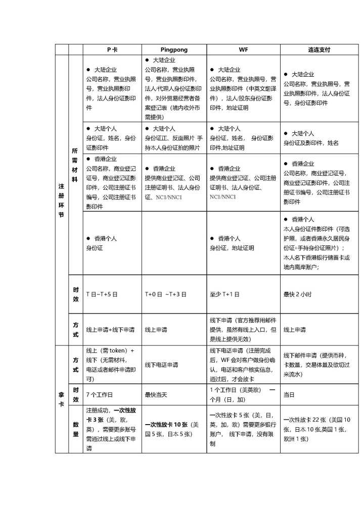 关于提现1.关于Payoneer:(1)从Payoneer提款到银行最低50美元起提,VIP客户有自动提现功能,设定好提现频次和金额后即可自动提现到银行。(2)用Payoneer公司账户只能提现到注册公司对公账户或者法人、股东的个人银行账户中。(3)如有需要,个人和企业账户都可以申请实体卡。这属于附加服务,收取29.95美元的年费。2.关于World FirsT(1)WF卡无需缴纳年费,没有有效期限制,没有提款额度限制。(2)以个人名义申请的WF卡只可以提款到申请人的银行帐户;以公司名义申请的WF卡只能提款到公司银行账户内,不能提款到任何私人银行账户。3.关于PingPong金融PingPong卡可以提出美金,也可以提出人民币。如果是提美金到香港公司或大陆公司的对公账户,大陆公司必须要有进出口资质证明,并且10000美金起提。