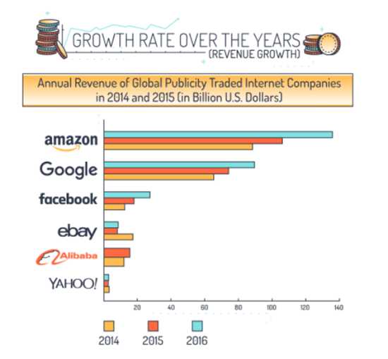 亚马逊电商销售额增长率是全球其余8大零售商增长总和的8倍,销量是其余8大零售商总和的6倍。