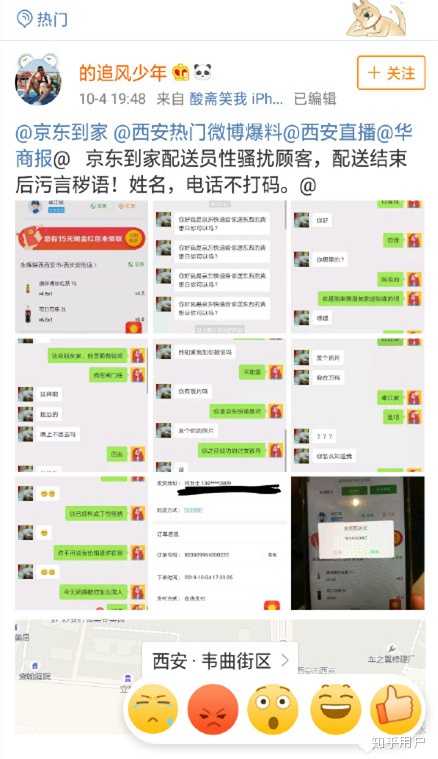 如何看待“西安京东到家配送员性骚扰客户事件”? 爱开淘 七月 2, 2019 业务发展 18 评论 1011 围观 法制晚报报道,西安京东到家配送员添加顾客微信,对其发送骚扰信息,性骚扰顾客。事发后,该女士用男朋友的微博ID发了上述微博,并向公安机关进行了报警。继滴滴顺风车,中通快递员事件后,京东又再爆出现威胁女性安全的事件。法制社会,女性该如何保护自身安全,平台又能发布哪些举措来进一步规范安全性? [图片]