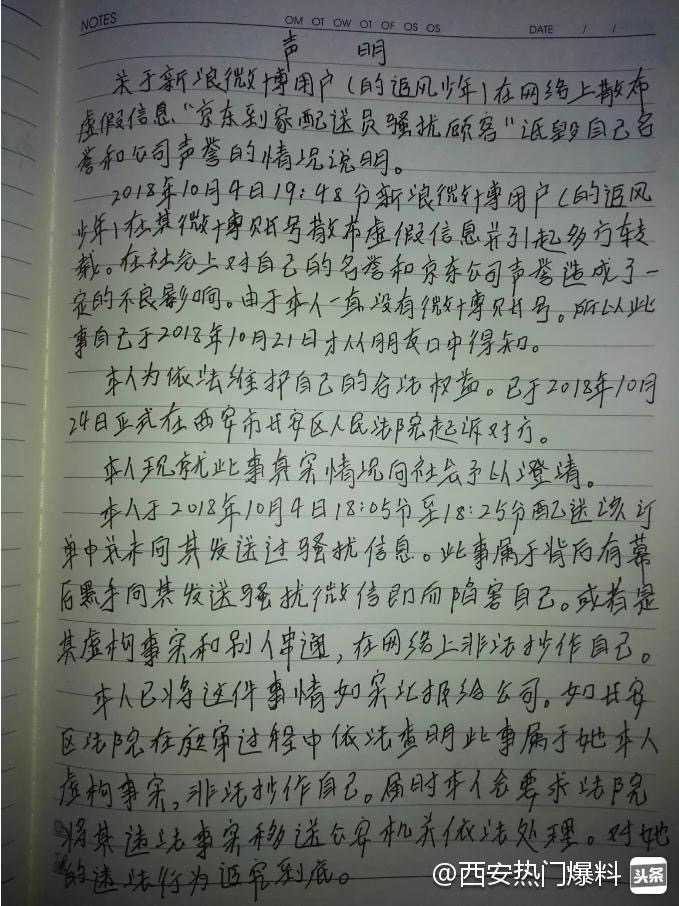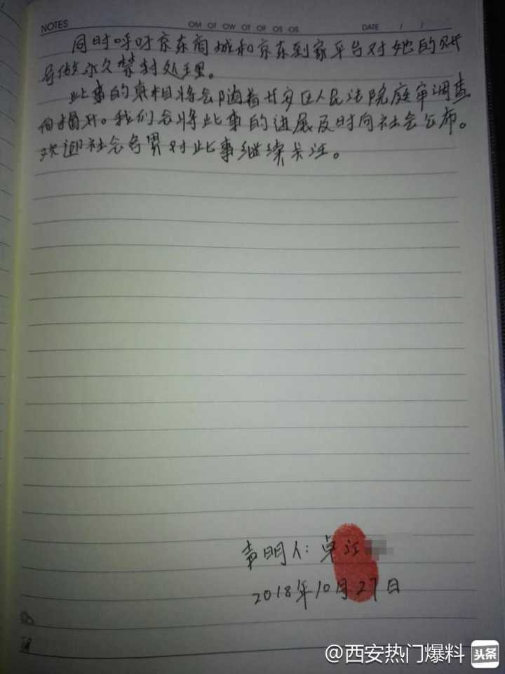 前几天遛达微博的时候看到这事的。缓了两天没说话,就是翘着二郎腿磨着指甲等所谓反转,结果等了半天等到京东到家送货员一份手写的…emmm…声明书?