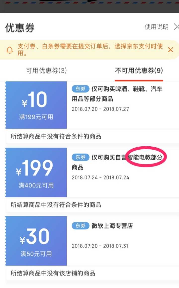 从网页顶部没写哪个类别可用到网页底部可用于“智能数码自营部分商品”,最后竟然是只能用在“自营智能电教部分商品”…电教…教… 看来东汪的营销还是有点手段的… 不得不服的是,文案的水平,“智能电教”也属于“智能数码”,所以说成“智能数码自营部分商品”好像也没“欺诈”,按这趋势,以后可以出个plus专享“全品类自营部分商品”,“买”到券后发现只能用来买某牌百花蛇草水。