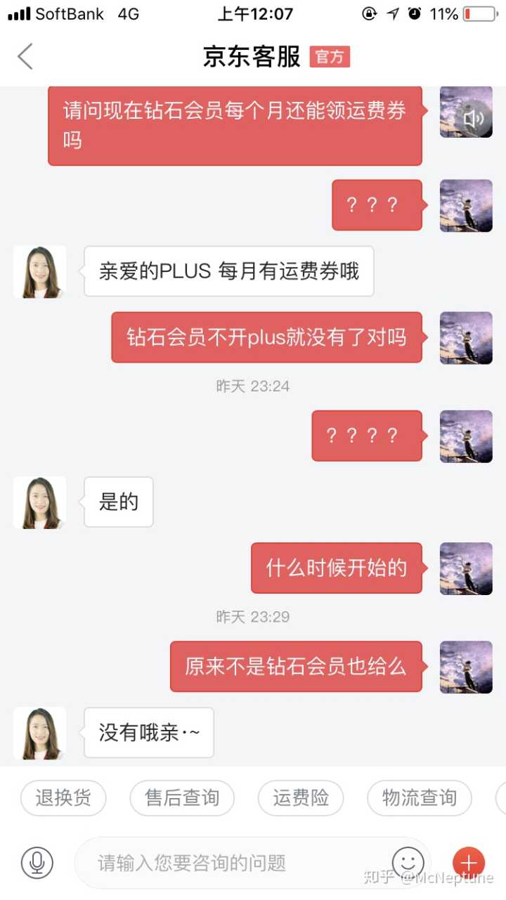 扯远了,反正之前一直依赖京东的,我们学校有时某些产品当地库存就有货,经常上午下单,下午就到。京东的物流速度真的没话说。后来大三我出国了,就再也没用过京东了,上周想让同学从国内帮我带点东西,我就从京东下单,发现plus已经掉了,买的东西正好90,差一点,我就去找钻石会员的那个礼包,因为有运费券嘛,结果怎么也找不到,于是我就问客服。