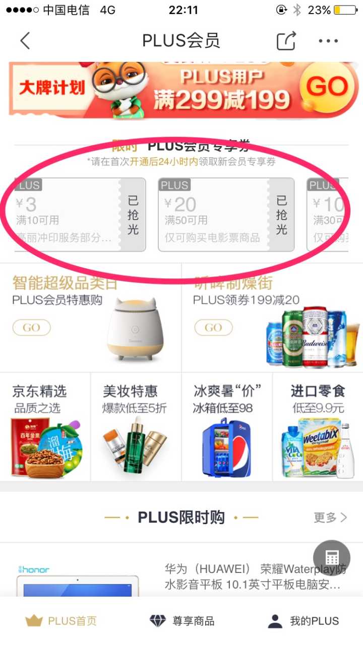当然plus会员还是有其他作用的,比如他可以抢很多专享券,好吧,当我没说。虽然这些券我也用不上,但是在我开通之前,这些券可都是点亮的…
