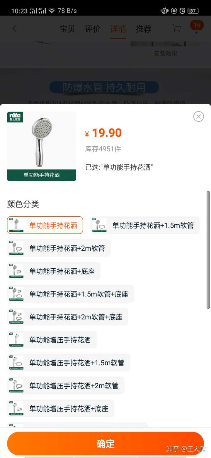 知道京东价格水分大,不如淘宝,于是我就去淘宝雷士的官方店查查看这个喷头究竟卖多少钱,虽然知道肯定会便宜很多。