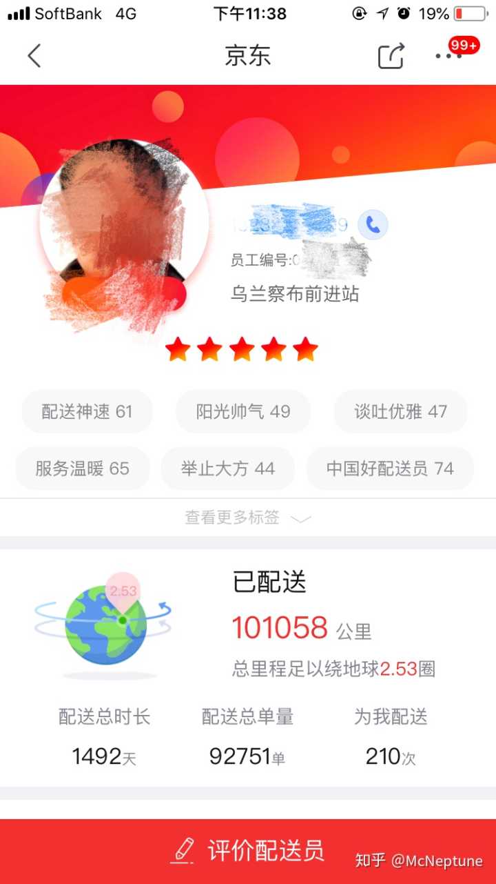 这个是我家那边的配送员,差不多两年时间为我家配送了210次。我学校在长春,大一大二两年为我配送了差不多150多次,因为是一年前的订单了找不到那个配送员的主页了,反正我都和京东的配送员都混熟了。。。去领快递不问名字直接给我东西。那会儿我记得还没有plus,包邮门槛好像也没99这么高。包邮门槛提高后,钻石会员每个月发免运费券,每个月我记得3张??差不多是这样。之后开始推出plus会员,只是冲着它奖励京豆比较多,而且我经常剁手开个plus还是挺合适的,我身边的同学每次买东西都让我帮他们买,因为我每个月运费券领到手软,自己留着也没什么用,因为我每次买东西都是超过99的。。。我身边的同学都说我京东狗,见我卫生纸都在京东买,就开始吐槽我,咋滴,学校卖的卫生纸擦不干净你屁股??!!