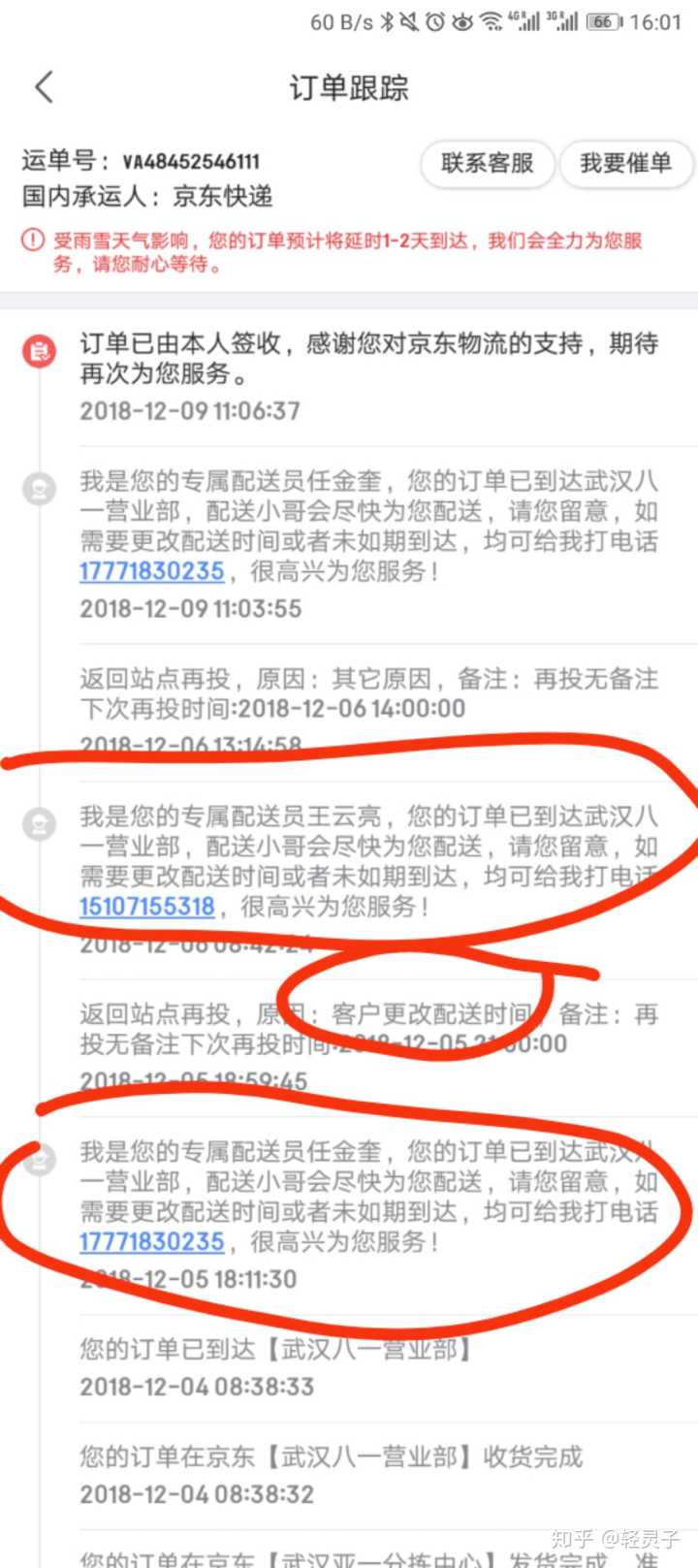 @@京东 现在越来越垃圾了,很多人在@京东商城EDM @移动京东 买东西应该就是图块吧,但是,它引以为傲的京东快递现在也堕落了,我的一个快递,4号早晨8点到配送站 ,5号晚上18点开始配送,在没有联系我的情况下 ,擅自说收件人(也就是我)要求更改配送时间,然后6号说配送了,但是我既没有接到电话也没有收到短信。然后昨天9号我投诉京东,站点给我打电话,态度很不好,没有解释为什么在没有通知我的情况下,撒谎说收件人要求更改配送时间,没有道歉,大意说了找到了给我送过来,找不到他们赔钱,没有歉意,没有道歉。然后,最骚的是,他们明明说了,后续给我打电话,但是昨天中午他们就显示我本人签收了!图3是当时卖家查询到的图,卖家先问我,是不是已经收到商品了,然后看到图我都傻了,因为当时我查还是停在6号,就是说当时我被屏蔽,看不到已经本人签收的情况。图然后今天,我这边也显示出来本人签收了!。我跟京东客服反馈五次,就昨天,配送站给我打电话了(因为人在国外,国内的号接电话太贵,我后来给配送站工作人员),然后无论是京东客服还是京东快递,都说后续联系我,但是没联系我,我还是京东plus会员呢!请问是不是快递行业归@中国邮政 @国家邮政局 管理?如果是的话请你们评评理 改处理处理,该罚款罚款@共青团中央 。希望你们学一下工信部@工信微报 ,展示出你们的效率
