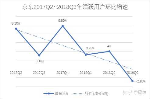 2018年Q3财报看,京东的营收增速,活跃用户增速双双下降,京东的市值,又是一路走低。