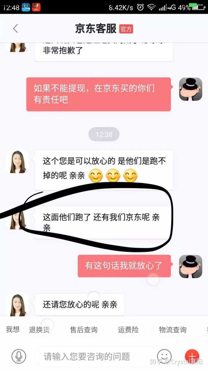 但是,狗日的京东客服,一直没有回复我,说打电话没打电话,京东app也没回复我,现在还晾着我,真牛逼