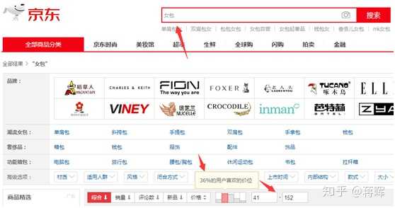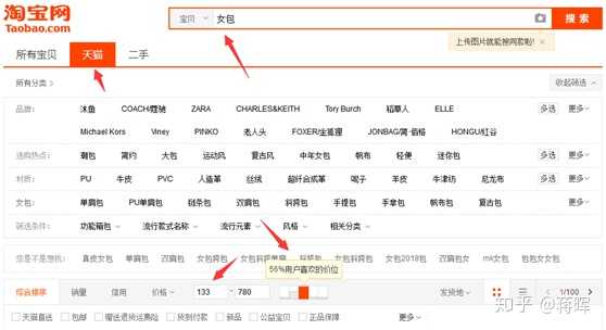 可以对比下天猫和京东客户对“女包”行业价格的接受度,然后结合你自身产品的价格去考虑: