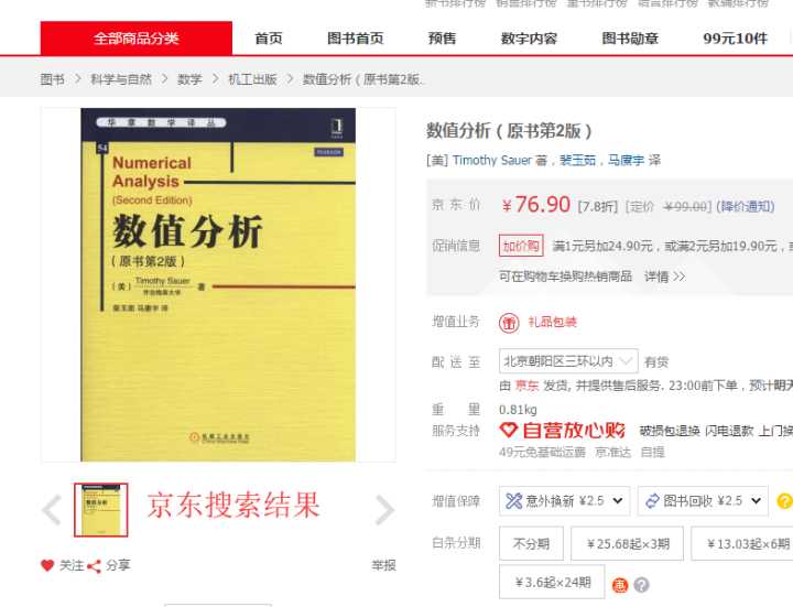 同样一本书,数值分析,书的ISBN:9787111480136