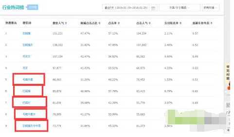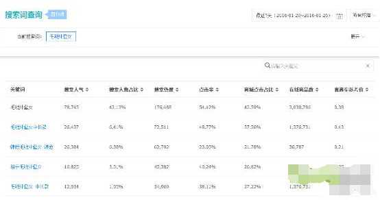 利用生意参谋-市场行情-行业热词榜抓取最近7天大类下两个端口的热门核心词,通过这些核心词分析出当前的子类热度排名(重复的归类一起,例如棉衣棉服),利用淘宝指数对每个子类进行数据收集,了解每一年每个时间段的搜索量,做一份市场表格进行每个子类的排列(切记排列是会在未来随着市场情况各种因素不断变化的,受全国天气、媒体潮流等等因素所影响,但是过去的热门时间段是固定无法改变的)。