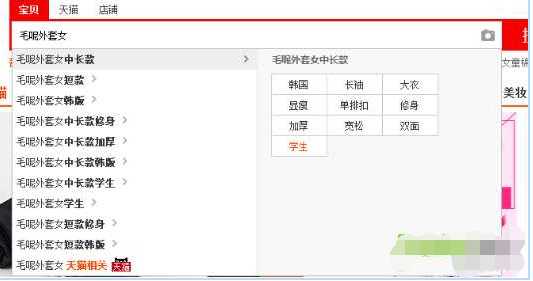 当然如果你的女装外套不是毛呢材质的但是是中长款的,那么你的热门主词就是“外套女冬 中长款”“外套女”“大衣女”这些了,然后一样通过主词延展出去跟宝贝卖点属性相关的词。