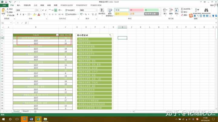 综合所有的【下拉词】,我们可以借助Excel数据透视表分析出不同关键词,各自的强者有多少,弱者有多少。所谓强者,就是【核心搜索词】下的所有【下拉词】的各自TOP20产品里头,有多少是超越【下拉词】的主子【核心搜索词】的平均销量。