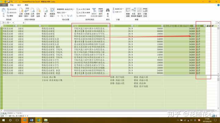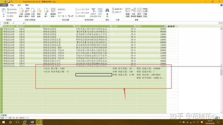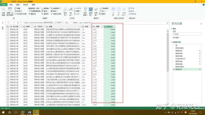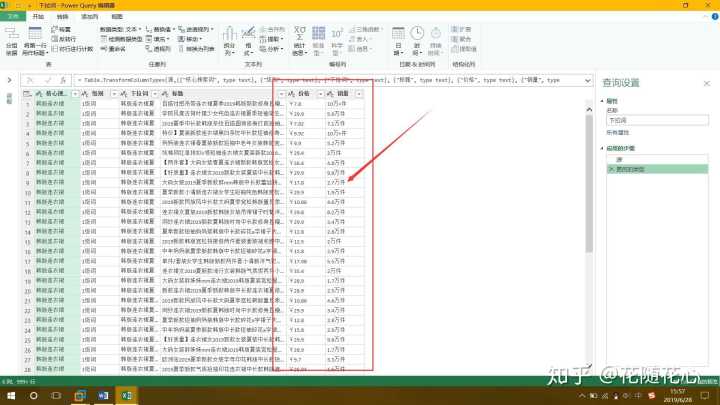 先用PowerQuery获取这份数据,并进行简单的数据清洗工作,把一些没有意义的符号删除掉。这里需要注意的就是,销量维度里头,带【万+件】这几个字符,无法直接参与计算。