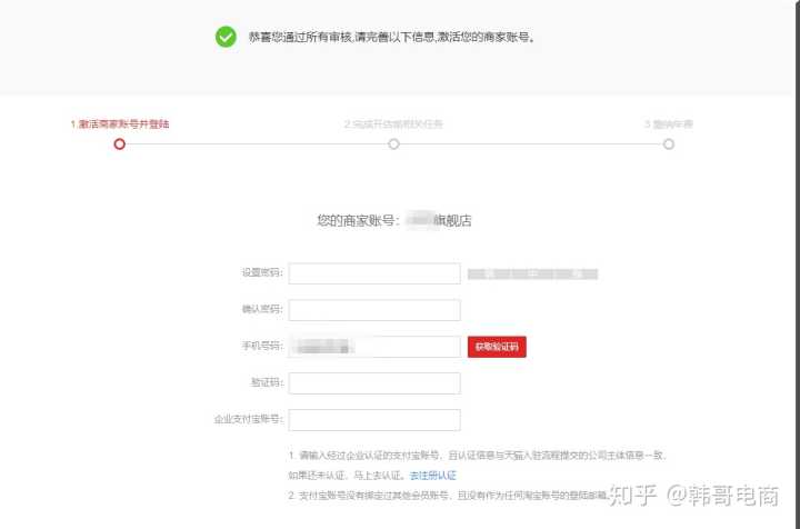 还是以旗舰店为例,进入入驻页面之后,把之前准备的资料填写上去。这里有一个注意点,带*的要好好填,不带*的可以不填,因为小二只看带*的。下面是两张截的流程图。