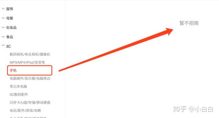很多商家会问,我只有这个类目这个产品啊,这个类目招不招呀。我可以非常明确的说,目前大部分产品是在招商的。那什么样的类目是不招商的呢,比如手机,这是明确公布的: