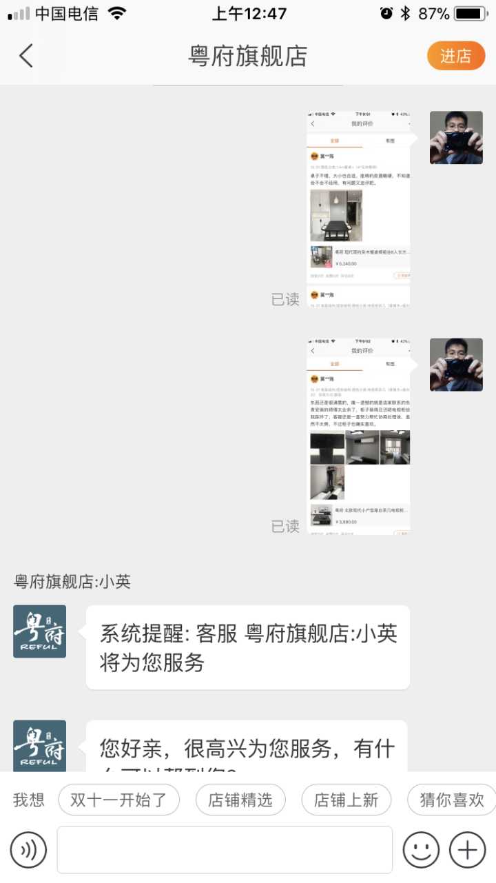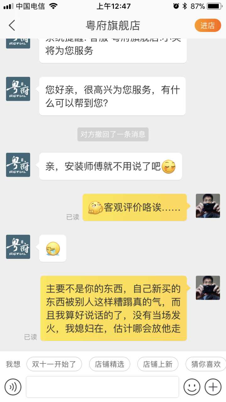天猫客服根本不想解决这个问题,第一天反应,说第二天发信息给我。留了电话。第二天也没发信息给我。我主动又找了客服。
