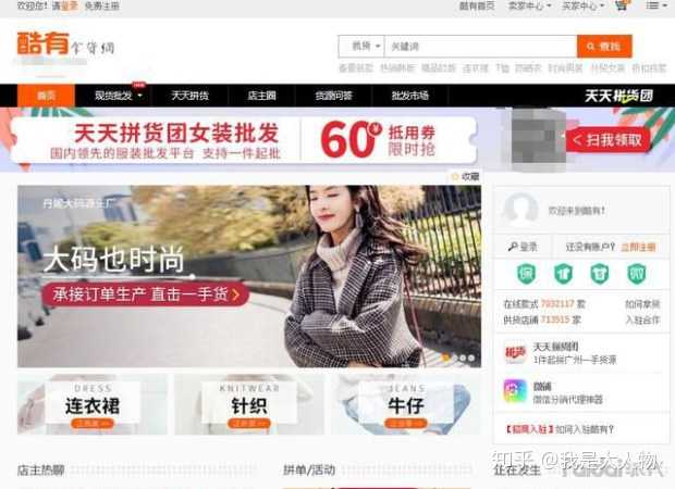 该网站主要经营的是男装,有很多知名品牌。同时还有自己的手机App目前对接的男装档口有好几万。做男装的卖家们,可以去逛一逛。
