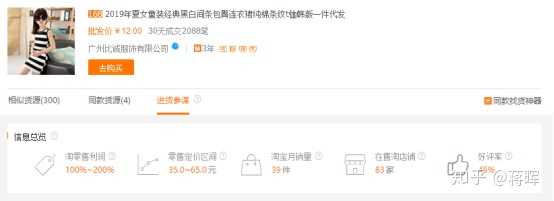 点开参谋,就会发现很有意思的数据,查看“进货参谋”里“淘零售利润”,图上看到的是100%~200%,意思就是在淘宝主流卖得好的店铺对于这款产品的售价,他的加价倍数是多少,100%就是加价1倍的意思,所以看得出,这款商品在淘宝上还是有利可图的。