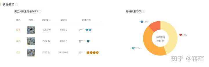 接着看淘宝月销量的数据,这款产品的单月销量数据是1758,平均一天60件的销量。对于在售淘店铺数量多好还是少好,很明显是少好,少意味着竞争小。
