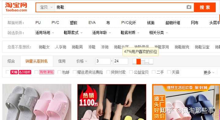 另外对于价格来说非标品通常价格不透明,存在几个主流价格区间,例如一双拖鞋,主流的价格区间3-24元,另外一个是25-68元,我们就可以抓取3-24元里的商品,加价30%让他进入25-68元的区间,这样就有效的避免和原卖家的相同商品在一个价格段来竞争了。并且这个不同价位的人群属性和定位是不同的,淘宝推送的商品也不一样,经常买中高端商品的人,淘宝就不会推荐中低价格的商品给他,哪怕搜索默认展示的都是中高端商品,这就是我们无货源一件代发能够存在的基础。