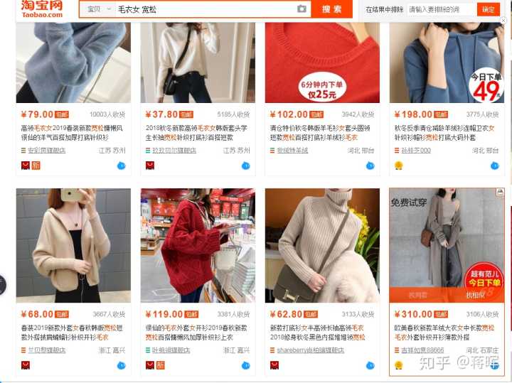 可以看到,排序在前几页产品有三个特点:1)分销店铺多,2)淘宝月销量大,3)款式大众款
