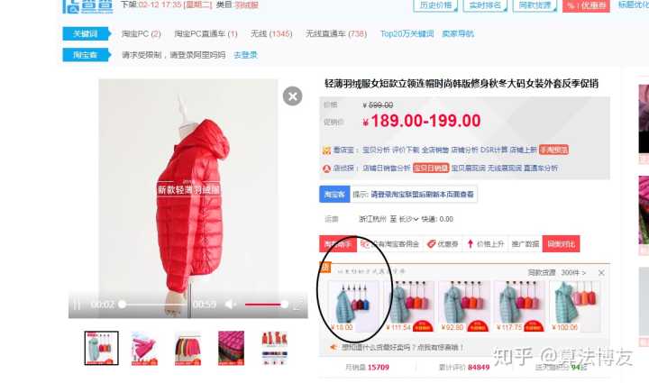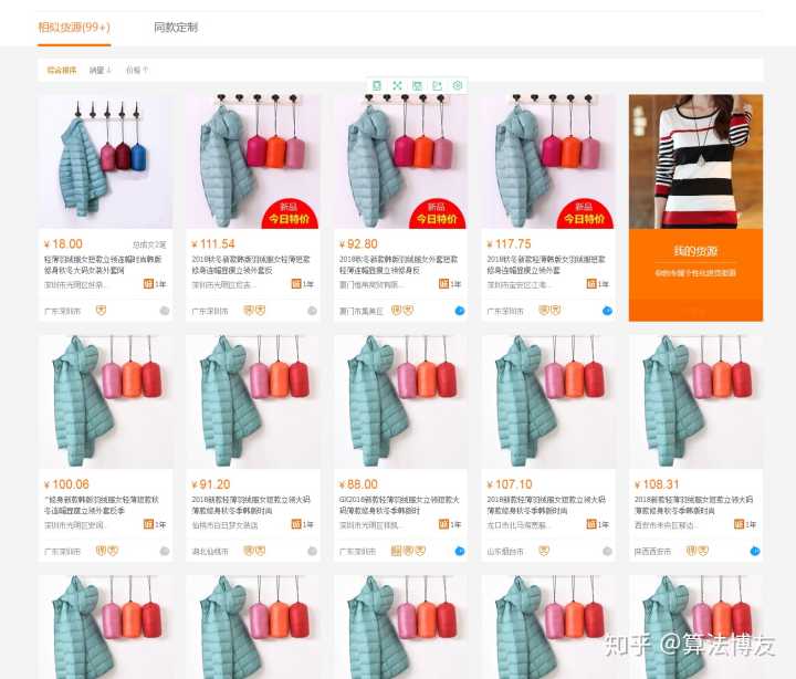 大类目细分:我们在1688找羽绒服女,安装一个淘货源插件,点击淘月销,可以看到下图