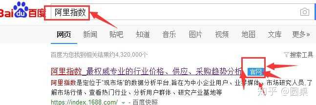 4、直接百度阿里指数,点击 带 有 官 网 的字样的链接进入