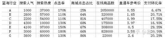 在分析蓝海行业类目时,可以多查询几个类目然后把生意参谋里的各项指标统计到Excel表格里,重点参考在线商品数、支付转化率、搜索人气,通过各项指标筛选出数据较好的,然后可以根据自己的喜好、自己所擅长的,选择出最优蓝海类目。