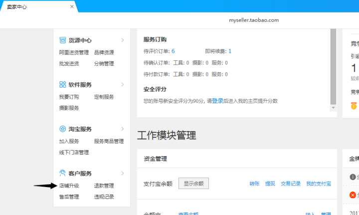 1.打开店铺后台,点击-卖家中心-客户服务-店铺升级